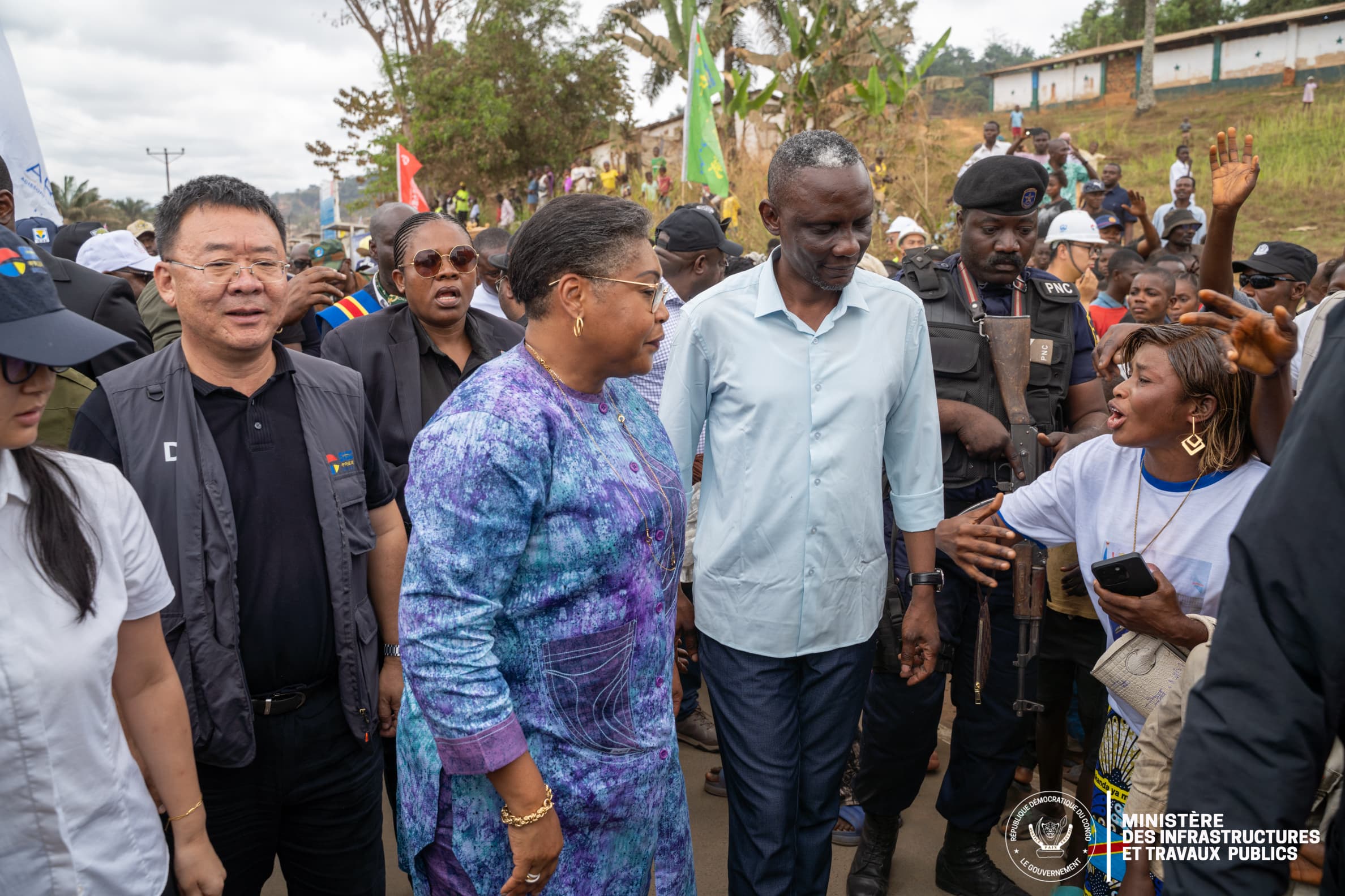 La Première ministre, Judith Suminwa Tuluka, accompagnée du ministre des Infrastructures et Travaux publics, John Banza Lunda, poursuit sa mission dans la province du Kongo-Central. Cette visite s’inscrit dans le cadre du suivi des travaux de réhabilitation de la Route Nationale n°12 (RN12) et du dialogue avec les communautés locales sur les priorités de développement.